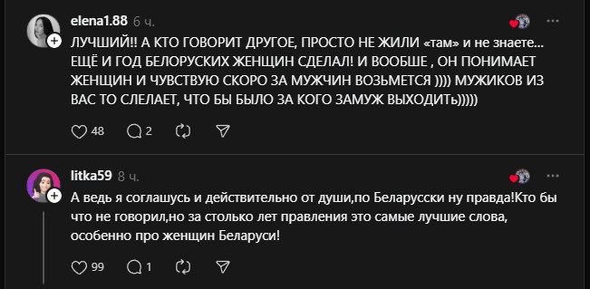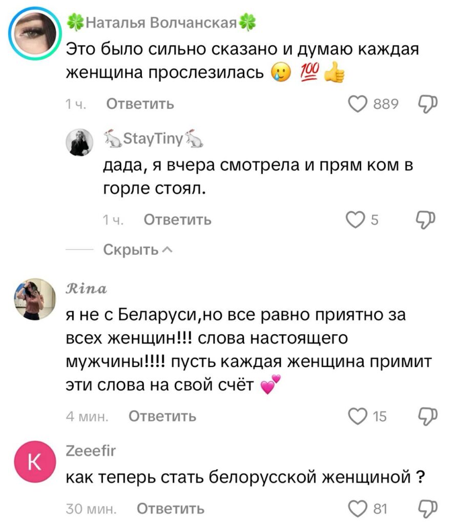 «2026 год белорусской женщины — ОДОБРЯЕМ!!!», «Это самое милое поздравление!», «Верно все сказано!», «Поддерживаю на все сто! Справедливо и по делу» — и таких комментариев становится все больше.