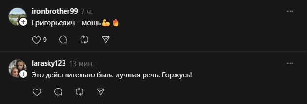 «Это лучшее, что сказал наш президент!!!! БРАВО!!!!», — пишет пользователь.