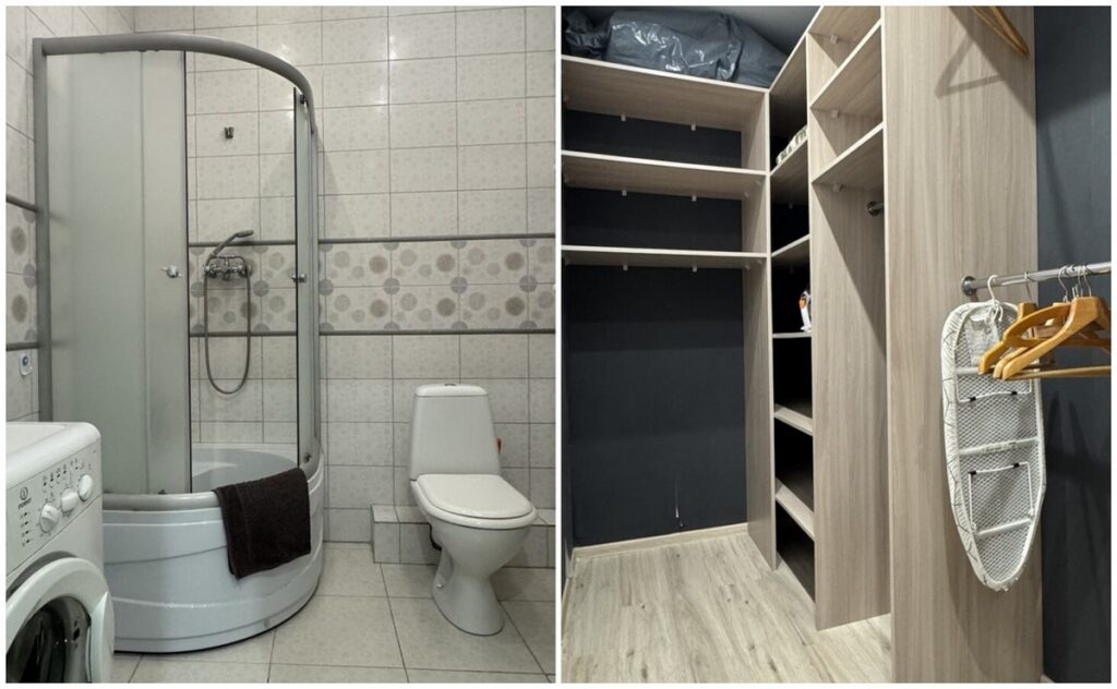 Жилище полностью готово к заселению и предлагается с мебелью. На полах установлены плитка и ламинат, а в окнах установлены стеклопакеты. В квартире предусмотрено отдельное помещение для кладовой, где организована гардеробная. Из кухни есть выход на застекленный балкон. Санузел в квартире раздельный.