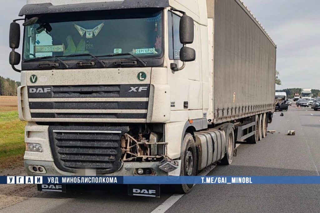 Утром 1 октября в Минском районе произошло ДТП. По предварительной информации, 34-летний водитель грузовика DAF с полуприцепом Schmitz, двигаясь в крайней левой полосе в направлении столицы, при перестроении в правый ряд столкнулся с автомобилем Toyota, за рулём которого находилась 46-летняя женщина. Об этом сообщили в пресс-службе УГАИ УВД Миноблисполкома.