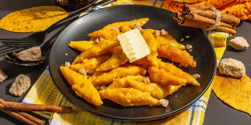 Это блюдо — идеальный способ познакомиться с тыквой для тех, кто до сих пор относился к ней с осторожностью. Нежные, воздушные, с мягкой сладостью и пряными нотками корицы, эти вареники понравятся каждому.