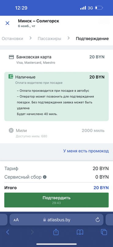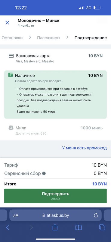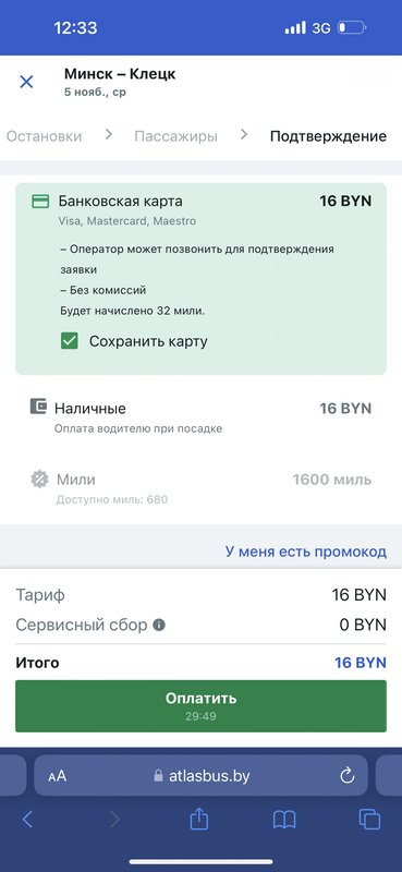 - Минск-Клецк, Минск-Солигорск: наличные или оплата в приложении.