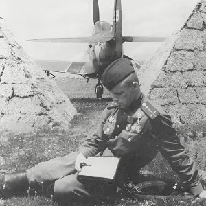 ** Вот ваш брат все пишет о летчиках, о героях опять же. Знаем, что герои. Мне уже надоело корреспондентам рассказывать, как я горел. Ему интересно это расписывать, а мне вспоминать больно. И почему он не пойдет к техникам, не расспросит их, как они работают. Героев Советского Союза — летчиков много. А почему не дают Золотые Звезды техникам? Я тебя спрашиваю! Вот, к примеру, приезжает фоторепортер из «Красной звезды»: «Желаю снять вас, товарищ Герой Клубов». А я ему говорю: «В одиночку сниматься не буду, сними меня с моим техником, с которым я всю войну прошел и который и в снег, и в дождь, и в пургу из любого летающего гроба за ночь самолет делал, чтобы я на нем утром фашиста сбил!»