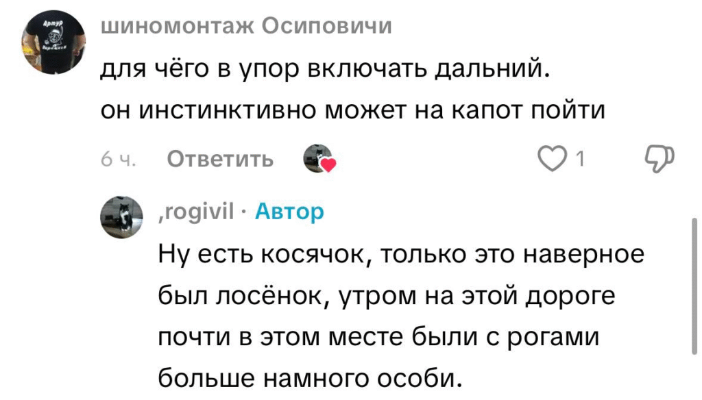 В комментариях пользователи призывают друг друга быть осторожнее: медленно ехать, не включать «дальний».