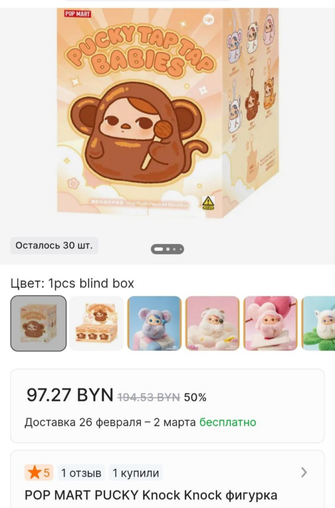 На AliExpress сейчас можно найти фигурку за 97 BYN. Успех объясняется просто: каждый персонаж «отвечает» за определенную сферу жизни. Один копит мудрость, другой — богатство, третий — счастье. Секретная фигурка должна принести владельцу успех. На Востоке любят подобного рода традиции, поэтому не удивительно, что там новую игрушку встретили с ажиотажем.