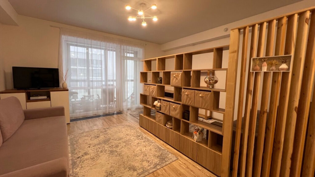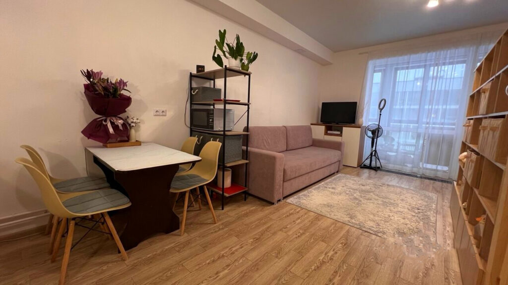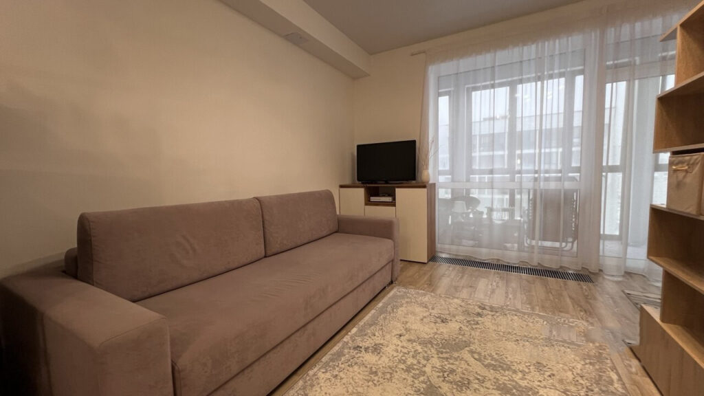 Строительство жилого комплекса недалеко от торгового центра «Экспобел» началось еще в 2020 году, но, в связи с определенными проблемами на рынке недвижимости, стартовые дома комплекса были объявлены арендными. Однако, несмотря на это, время от времени появляются варианты на продажу. В данный момент, к примеру, на продажу выставлена новая однокомнатная квартира, которая уже готова для проживания и полностью меблирована.