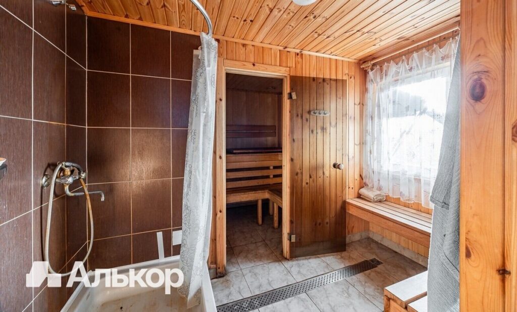Отдельная постройка — это баня общей площадью 20 квадратных метров. Она состоит из трех функциональных комнат: парной, душевой и комнаты отдыха.