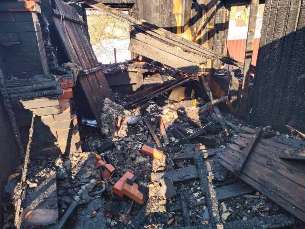 В итоге огонь уничтожил крышу, стены и всё содержимое дома.