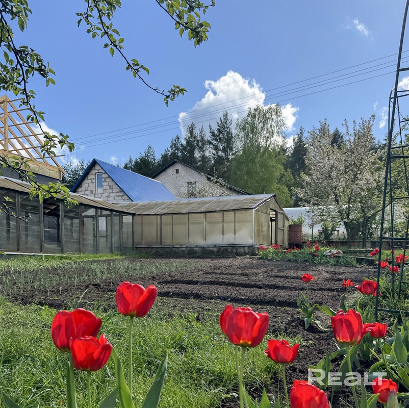 Дача расположена на небольшом участке площадью 5 соток, который огорожен забором и живой изгородью. Судя по фотографиям, за приусадебным участком тщательно ухаживают. Здесь есть газон, грядки для овощей, теплица, а также плодовые деревья и кустарники.