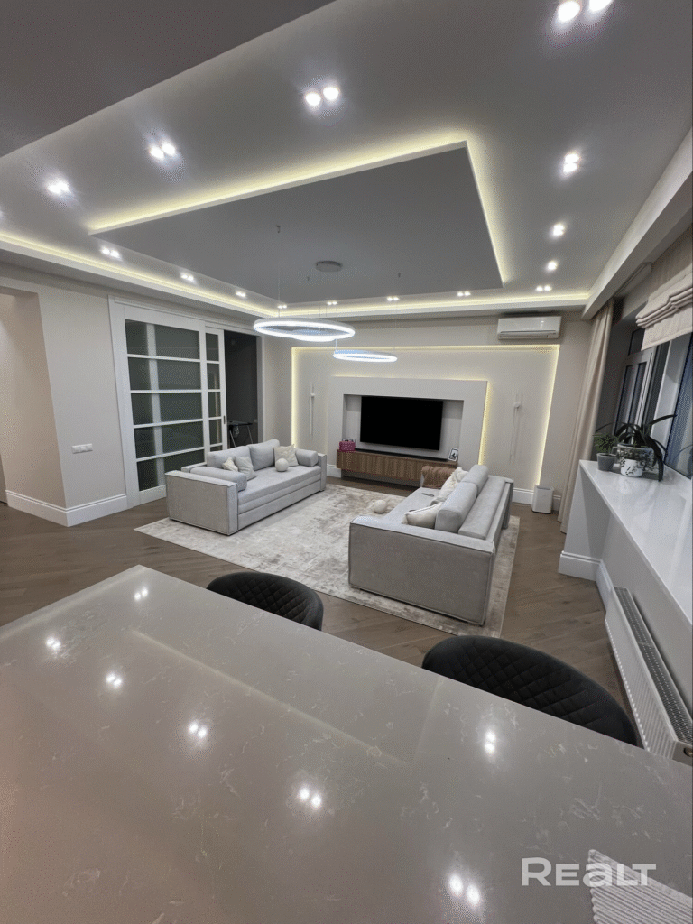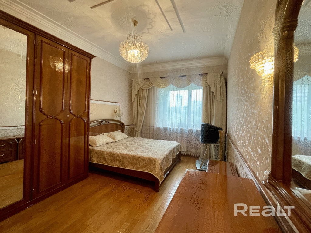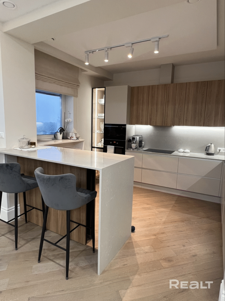 Квартира уже с евроремонтом и мебелью. Окна выходят на две стороны, открывается вид на Свислочь. В доме предусмотрены современные удобства: охрана и консьерж, видеонаблюдение, видеодомофон, лифт, интернет и телефонная сеть. В наличии два парковочных места в подземном паркинге.