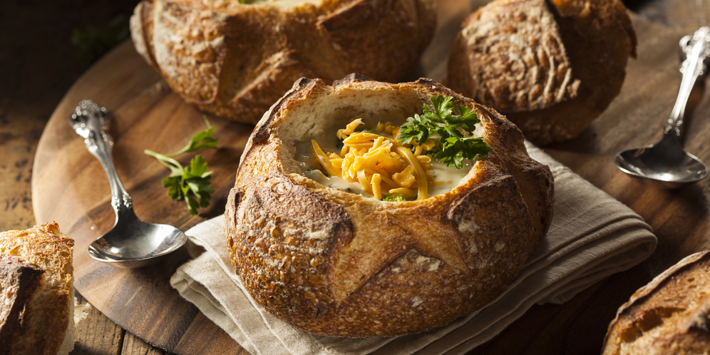 Идея подачи сытного супа в съедобных мисках гениальна в своей простоте. Блюдо выглядит эффектно, но его приготовление под силу даже не самому опытному кулинару.