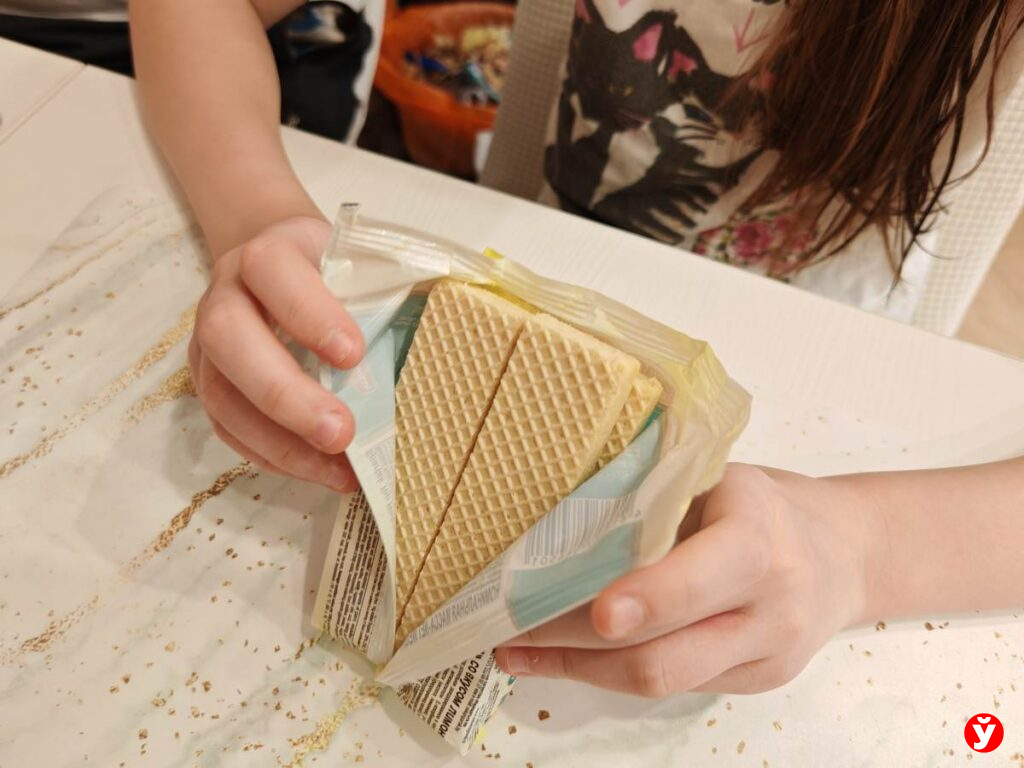 Последовала ее примеру и съела небольшой кусочек — неплохо. Что-то похожее я действительно ела в детстве: только тогда вафли продавались на развес, и продавцы упаковывали их в шуршащую бумагу.