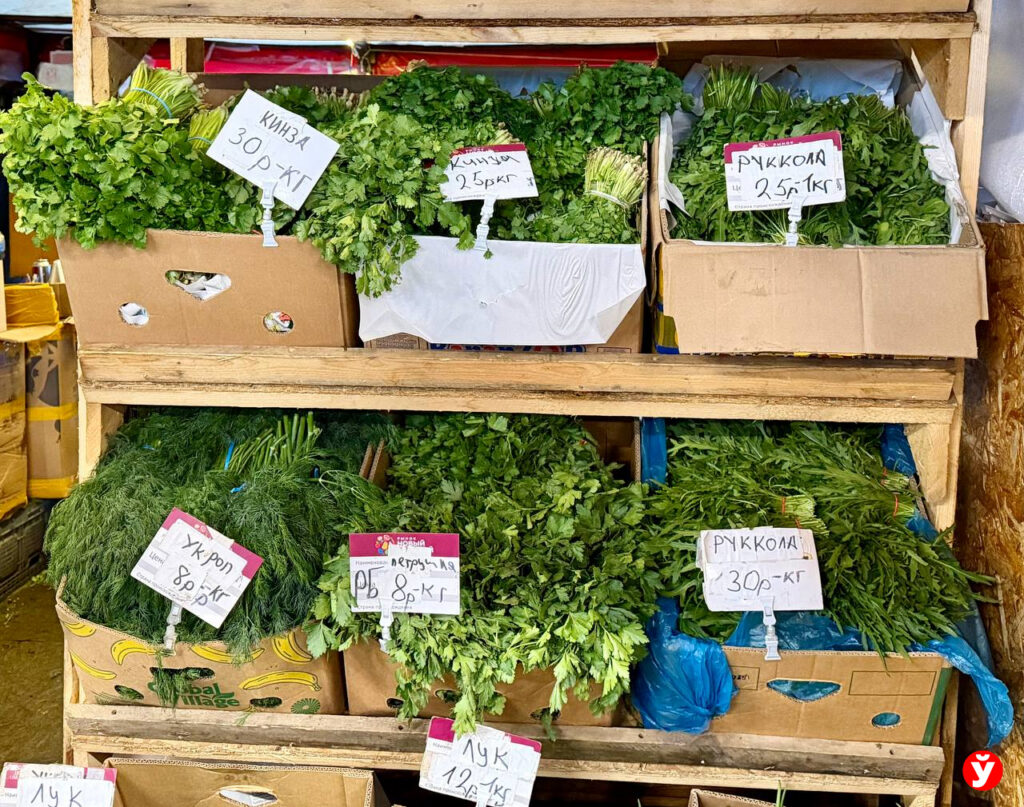 По запаху сразу слышно, куда идти, чтобы найти зелень, уж очень она тут ароматная: укроп, петрушка, кинза, зелёный лук, руккола — всё аккуратно сложено пучками.