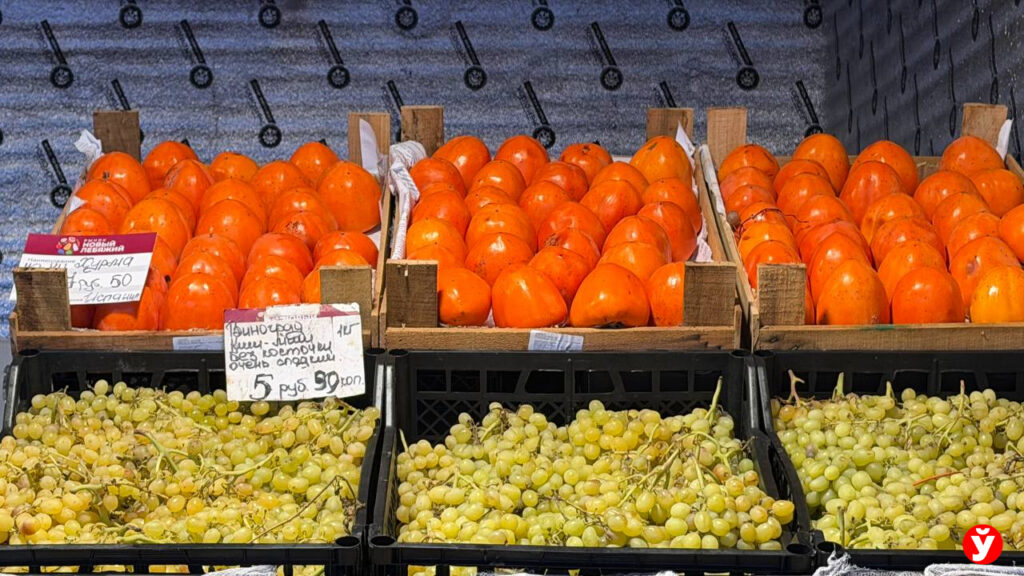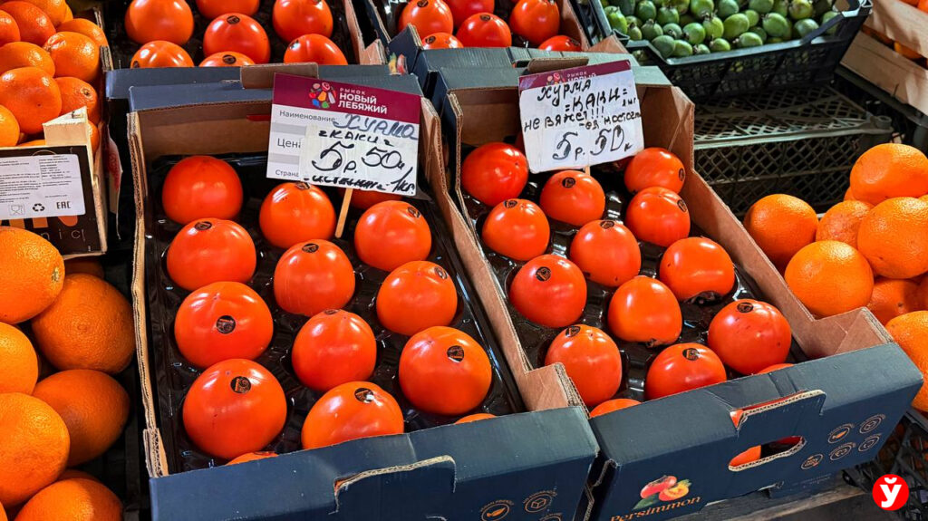 Самая заметная гостья рынка — хурма. Её здесь много, она яркая, мягкая, аппетитная. Продавцы говорят, что «Шоколадная» — самая сладкая, а «Королёк» — самый сочный. Обещают, что «Каки» не будет вязать язык! Цена на хурму колеблется в районе 5,50-6,90 рублей за килограмм. Интересный факт: хурма богата бета-каротином почти как морковь, но при этом считается «солнечным фруктом», который в Азии дают детям для укрепления зрения.