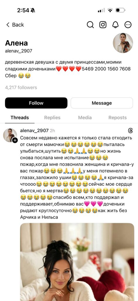 С женщинами, конечно, сложнее — трудно представить себе нашу гражданку, которая будет переводить незнакомому мужику деньги на карту. Это тот случай, когда сразу видно, что с зятя нечего взять. Но для женщин есть свои приемы — всевозможные «больные дети» и благотворительные странички. При этом человек, который нуждается в помощи, действительно может быть в реальности — но страницу с его фотографиями будет вести ИИ-бот, и к этому человеку она не будет иметь отношения. То есть можно общаться, получать какие-то «ответы» в комментариях, но самое главное — жалобные и слезливые картинки. Как вариант, помощь можно собирать на кошек и собак — наши люди им почему-то больше сочувствуют, чем согражданам.