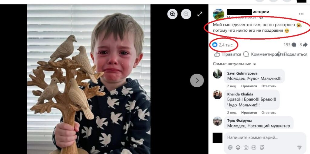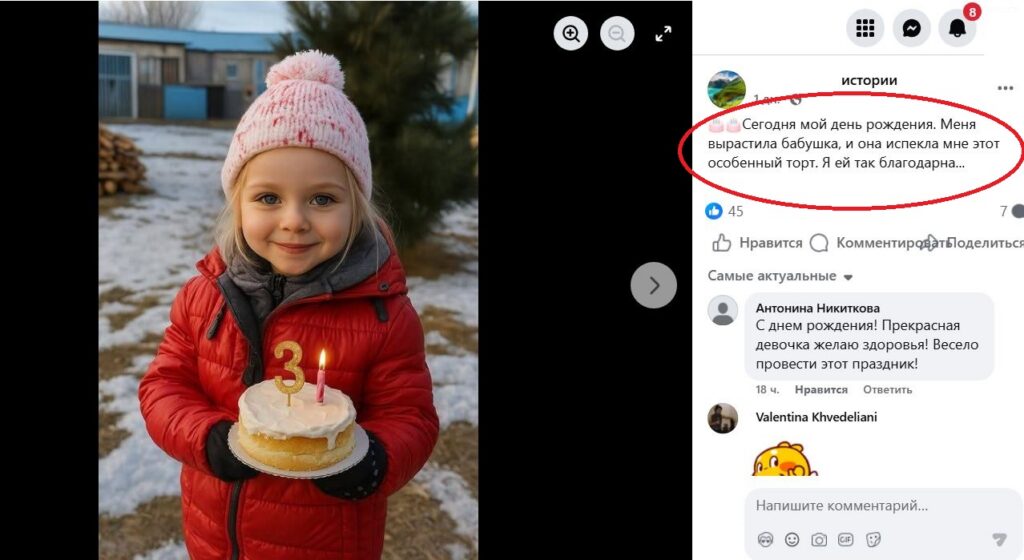 В более безобидных вариантах — это алгоритмы, чтобы нагнать комментарий, трафик и ботов на определенные страницы и группы. Например, автору этой статьи Фейсбук постоянно предлагал то намалеванные картинки солдат ВСУ, то каких-то барышень на фоне сельских угодий с фразами типа «у меня сегодня день рождения, а меня никто не поздравляет», «я пилот авиации, у меня сегодня праздник, поздравьте меня», «я из села и горжусь этим».