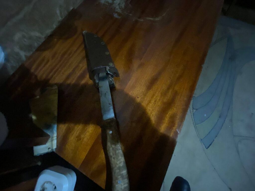 Спустя несколько минут ответной реакцией на вопрос сестры «Зачем ты это сделал?» со стороны пьяного дебошира — вспышка бесконтрольной ярости. Мужчина схватил нож и, демонстрируя его, начал кричать: «Убью тебя и твоих детей!». При этом расстояние между ним и испуганной женщиной, пытавшейся заслонить подростков, составляло всего около полутора метров.