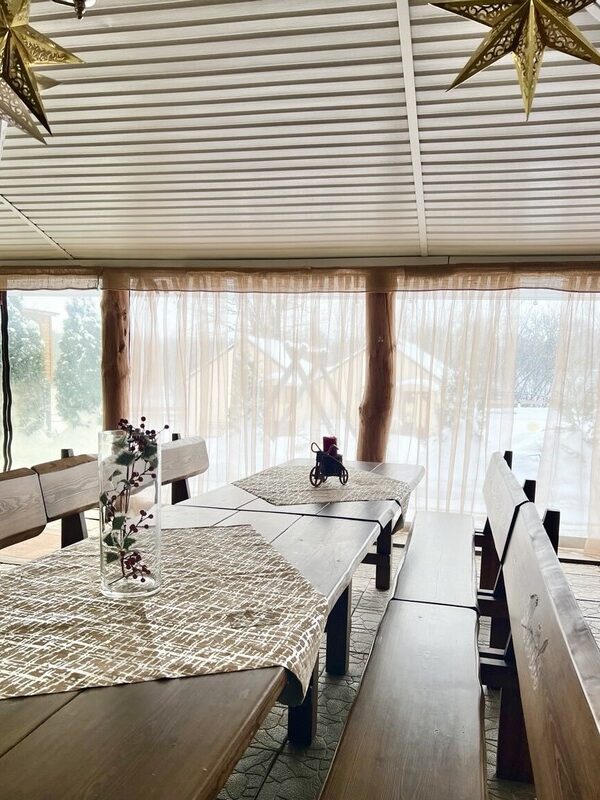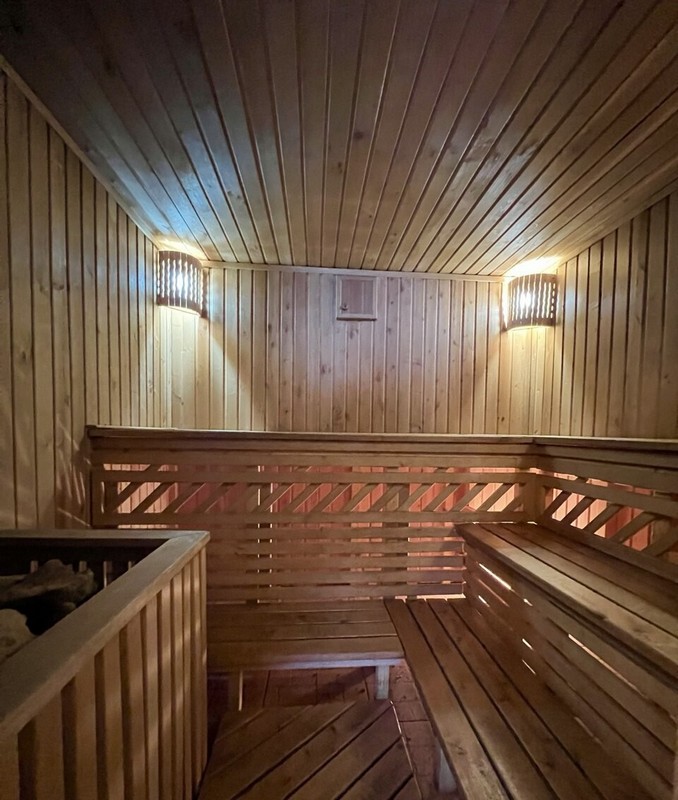 Не забыта и беседка, вмещающая до 30 человек, которая подойдет для проведения больших мероприятий и семейных праздников. Для любителей сауны предусмотрена баня с сауной и купелью, откуда открывается живописный вид на окрестности.