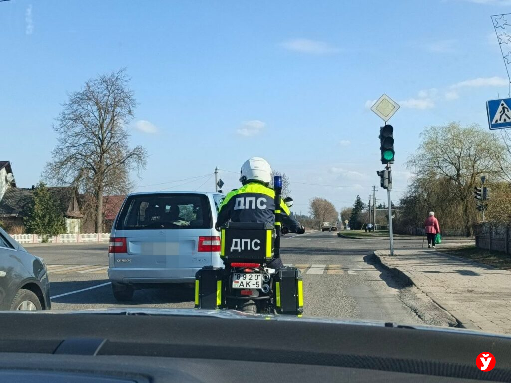 Дальше — центр Несвижа. На светофоре стоит мотоцикл. Спортивный, яркий, за рулем — девушка. Сергей Николаевич поравнялся, включил маячок, показал жестом — прижмитесь к обочине, давайте поговорим.