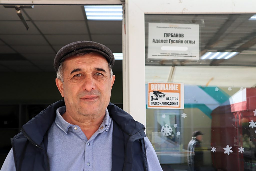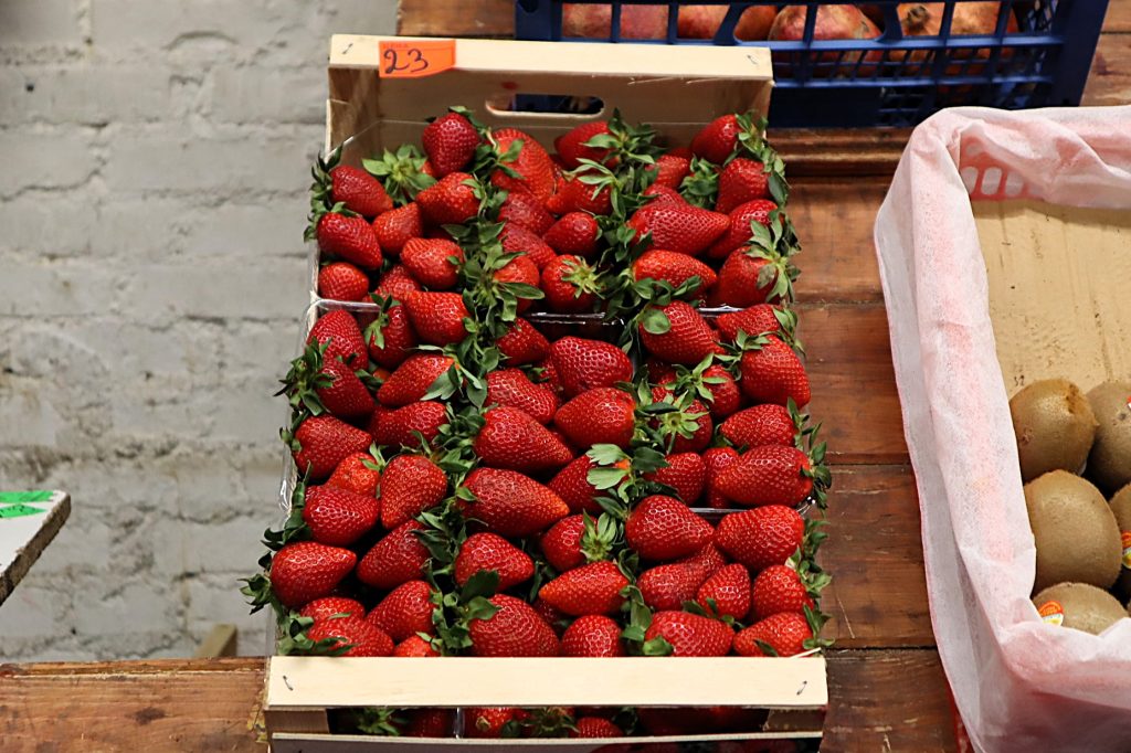Торговая точка Адалета – в закрытом павильоне, не на улице. В этот день он выставил клубнику по цене 17 рублей 90 копеек за килограмм и утверждает, что старается весь свой товар продавать молодечненцам дешевле его средней стоимости на рынке.