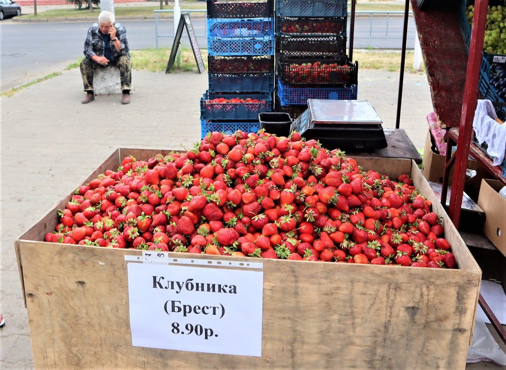 В этот же день на улице Франтишка Скорины возле «девятиэтажки» ягоду с брестских плантаций продавали по 8 рублей 90 копеек за килограмм.