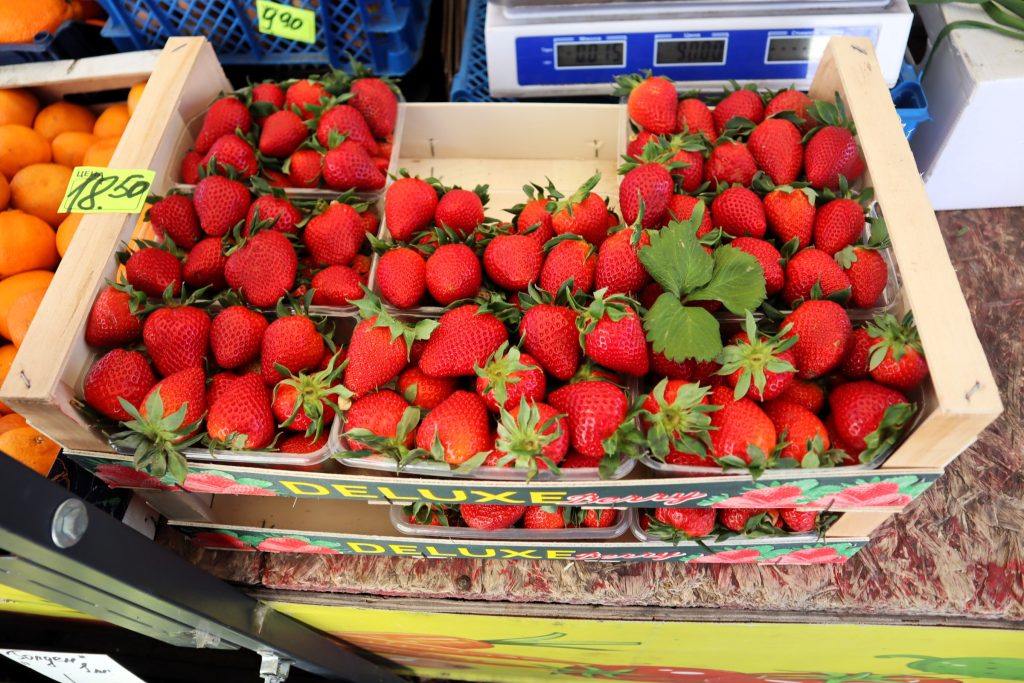 Возвращаемся на рынок, где мы нашли самую дешёвую клубнику на этот момент. Вкусняшка из Греции стоит 16 рублей 90 копеек.