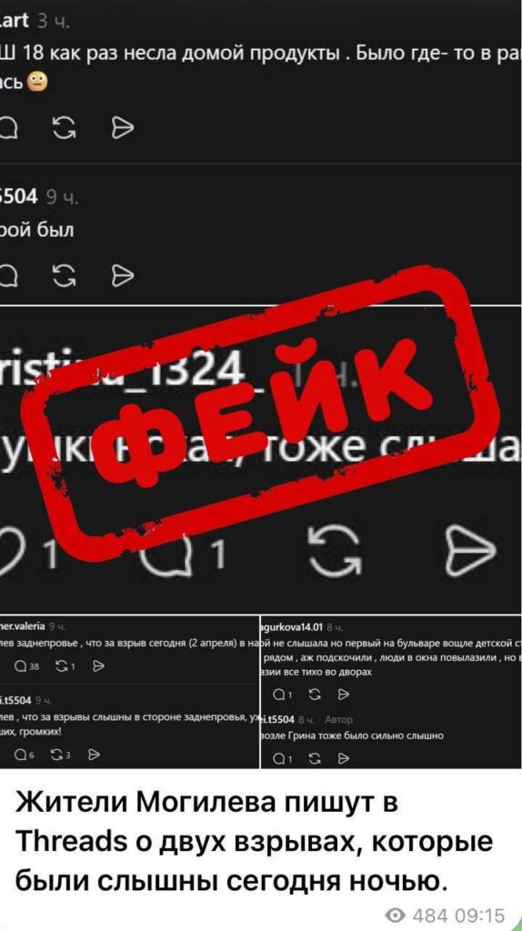 Ранее в деструктивных ресурсах появилась информация про летающие дроны, взрывы в Могилеве в районе Заднепровья. Это является информационным вбросом.