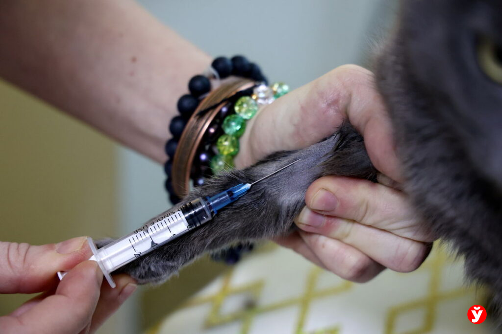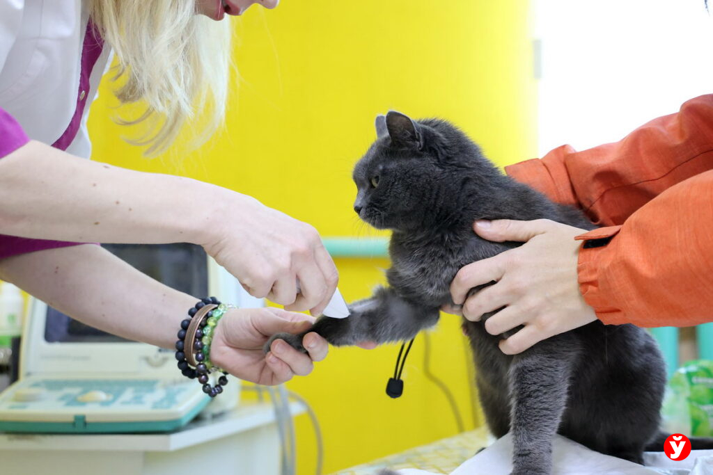 Следующая по записи – кошечка Мила, во внешности которой угадывается британская порода. Взвешиванием мурлыка не отделается: хозяйка привела свою красавицу на прививки. Да и анализы сдать не мешало бы – у Милы есть проблемы с почками, надо убедиться, что все в порядке. Доктор аккуратно сбривает шерсть на лапке, делает укол, затем забор крови, УЗИ органов. Пациентка держится молодцом, лишь пару раз вставляет жалобное «мяу». То ли объектив фотографа отвлек ее от процедур, то ли руки врача и вправду волшебные – боли Мила будто не замечает…