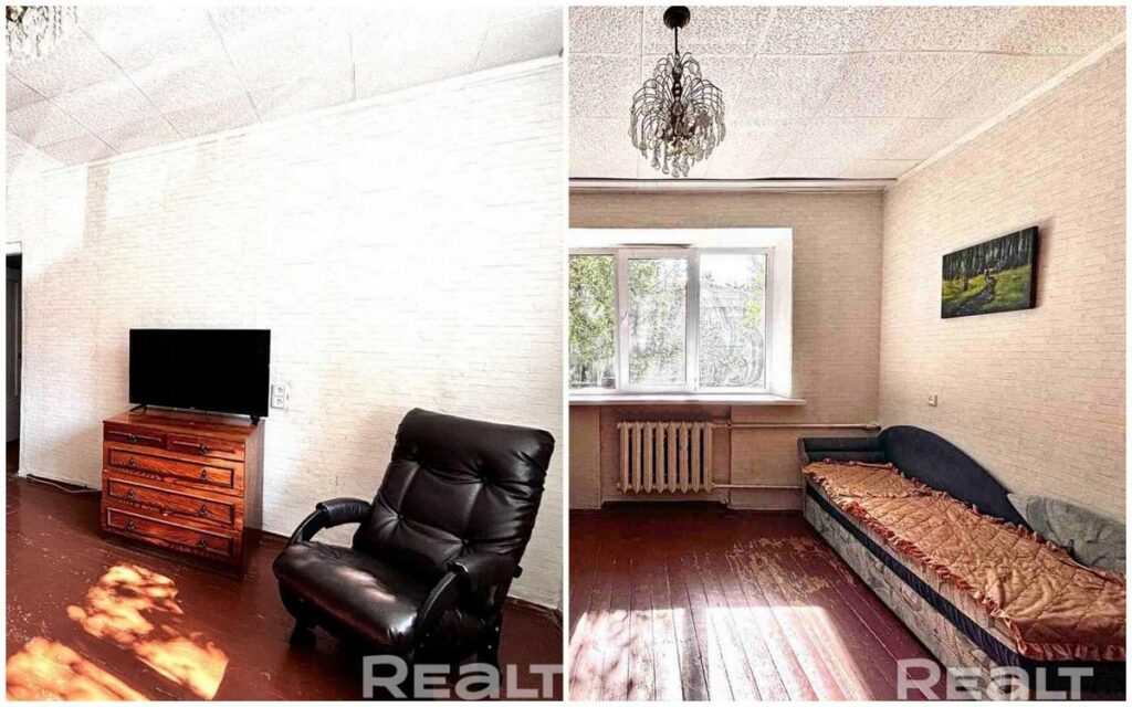 Жилище требует ремонта. Внутри имеются две изолированные комнаты, которые уже обставлены мебелью и бытовой техникой. Однако балкон в квартире отсутствует. В коридоре можно найти антресоли для хранения вещей. Санитарный узел совмещен.