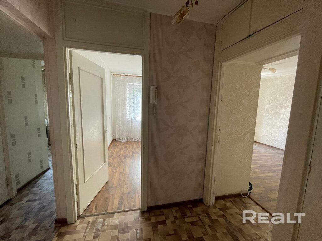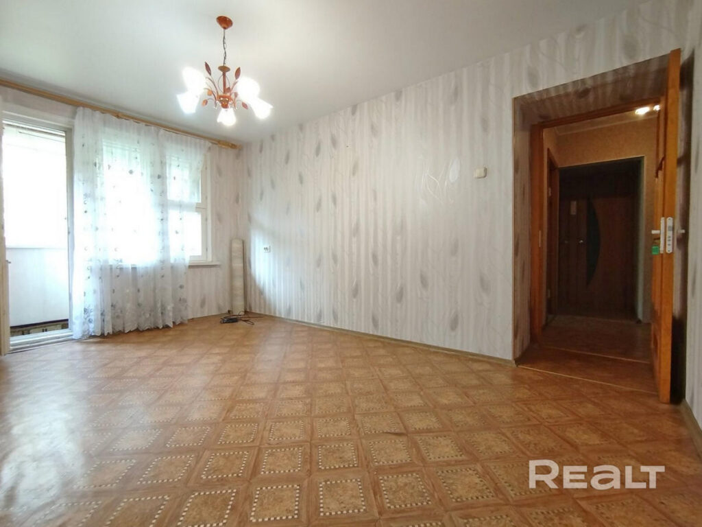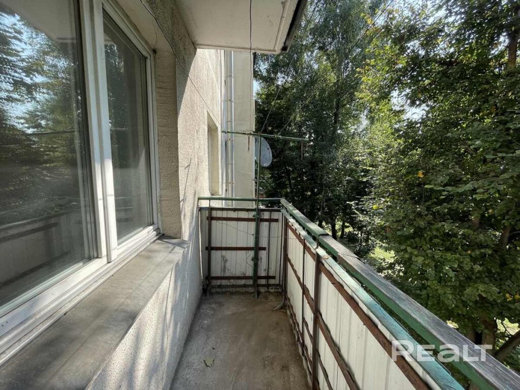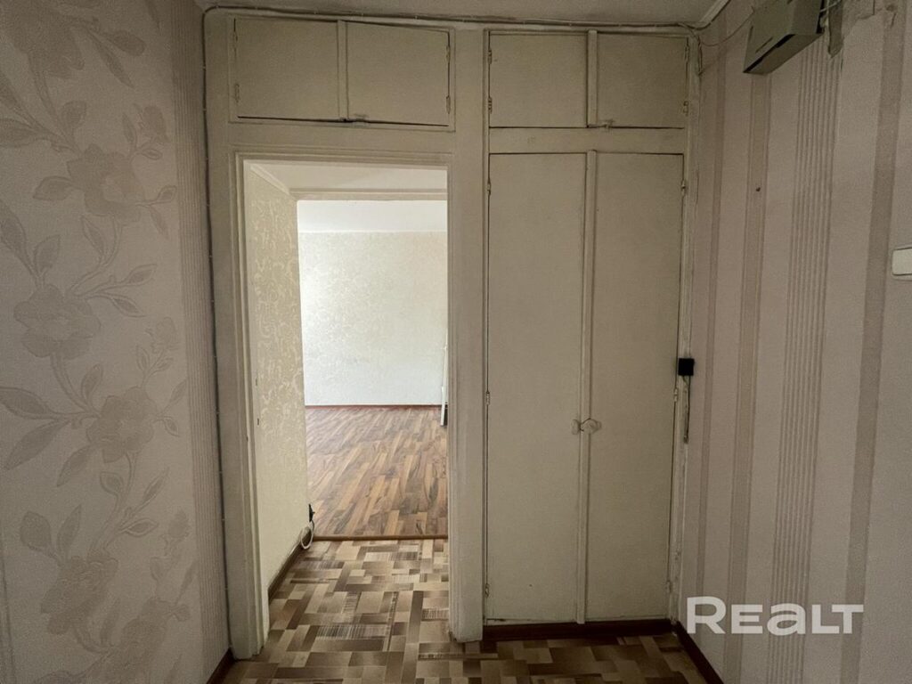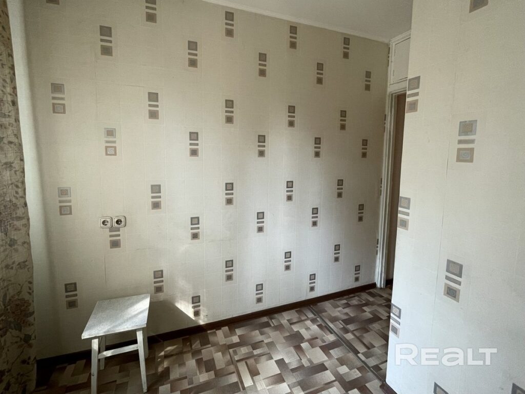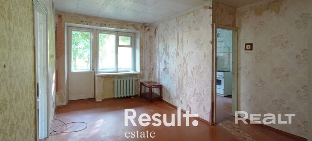 Внутри требуется провести некоторые обновления. В квартире установлены стеклопакеты, а на полах лежат линолеум и плитка. Обе изолированные комнаты уже освобождены от мебели и бытовой техники. В коридоре предусмотрены встроенные шкафы для хранения вещей. Из одной из комнат имеется выход на открытый балкон.
