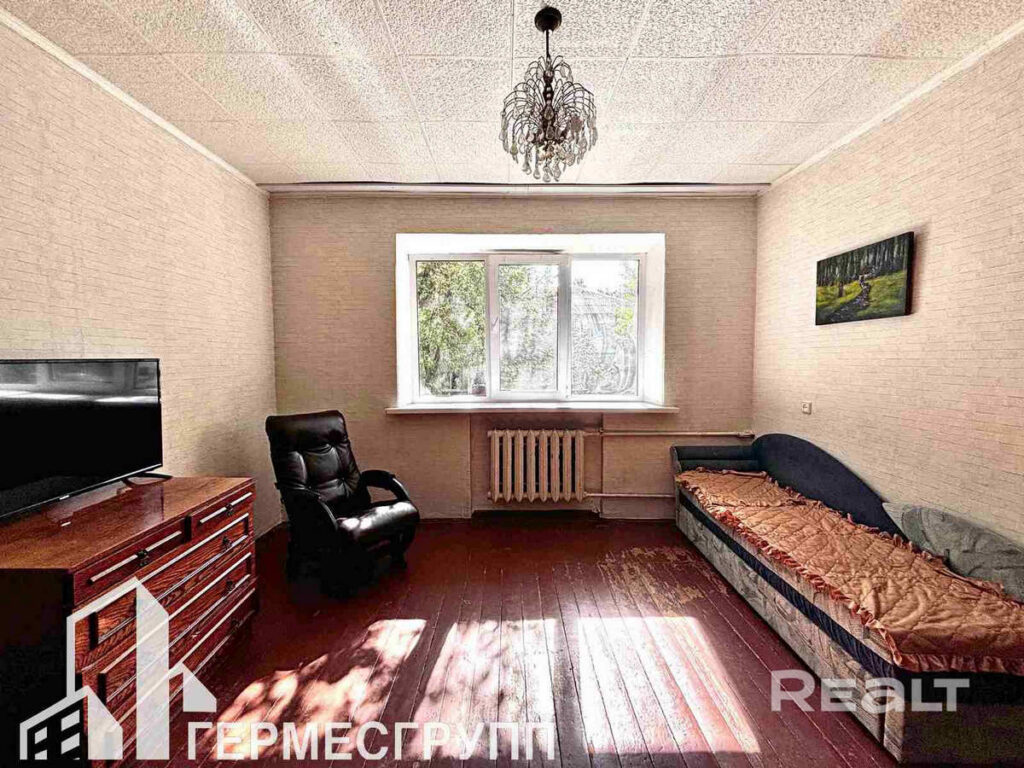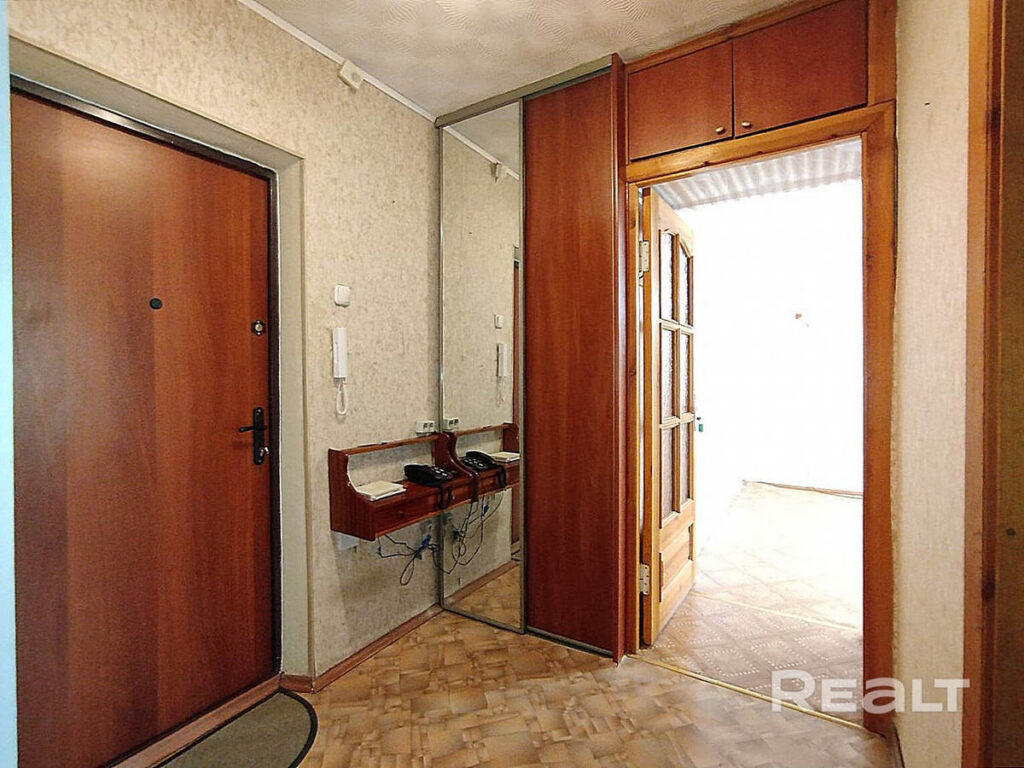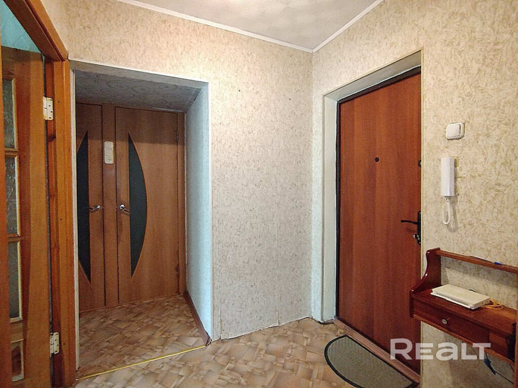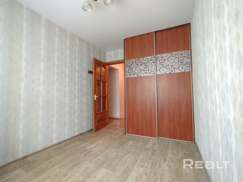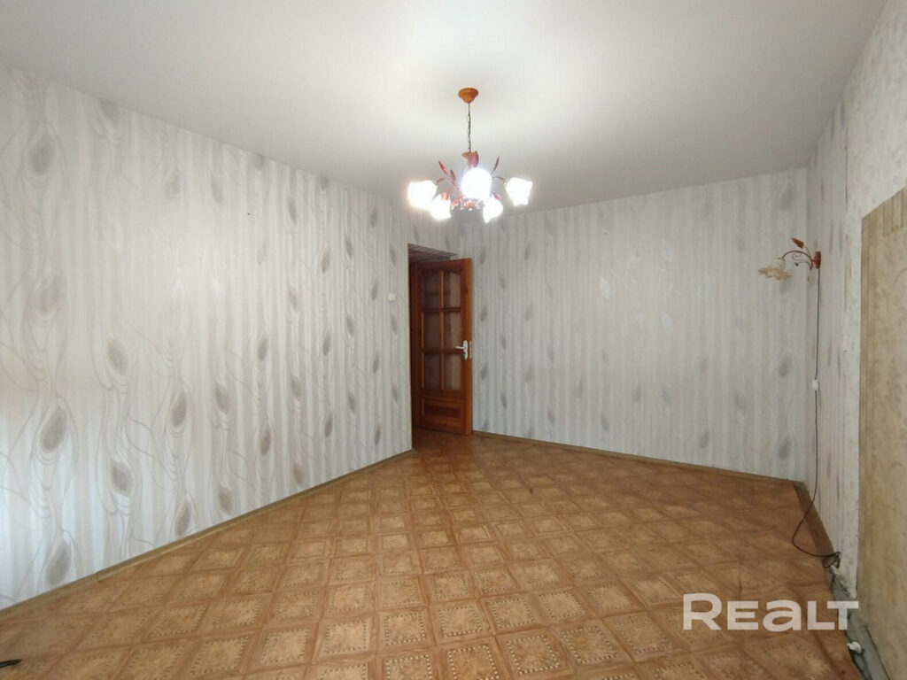 Внутри требуется провести некоторые обновления. В квартире установлены стеклопакеты, а на полах лежат линолеум и плитка. Обе изолированные комнаты уже освобождены от мебели и бытовой техники. В коридоре предусмотрены встроенные шкафы для хранения вещей. Из одной из комнат имеется выход на открытый балкон.