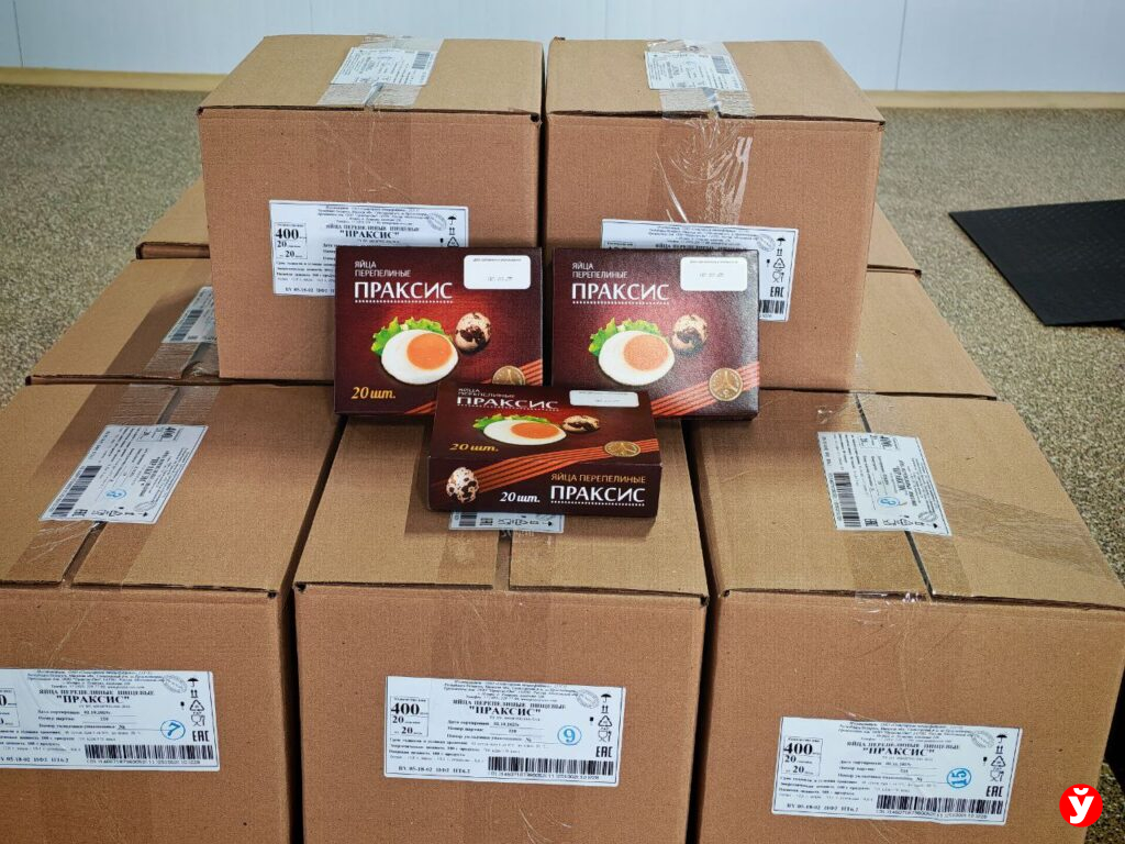 Александру Лукашенко также предложили продегустировать готовую продукцию предприятия. Глава государства попробовал яйца перепелиные копченые, паштет из яйца куриного и перепелиного с грибами.