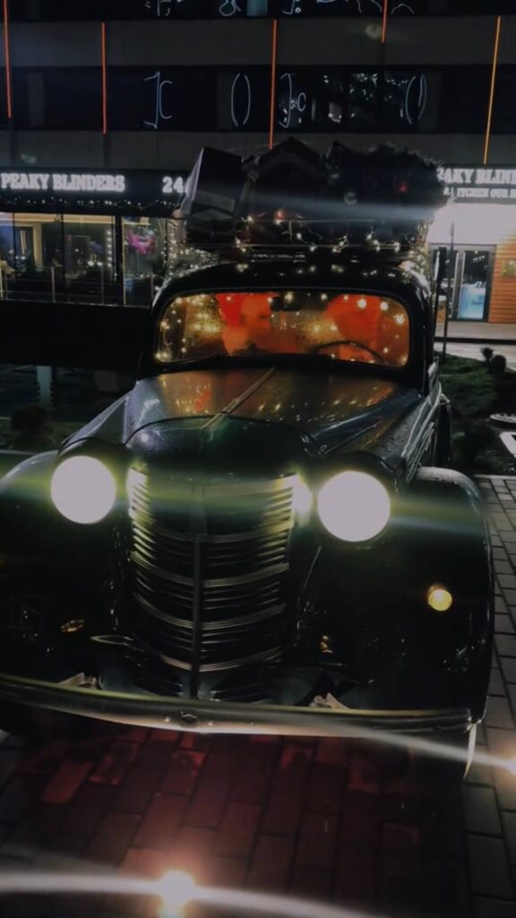 Эта диковинная музыкальная машина припарковалась около станции метро Михалово, возле ресторана Peaky Blinders.