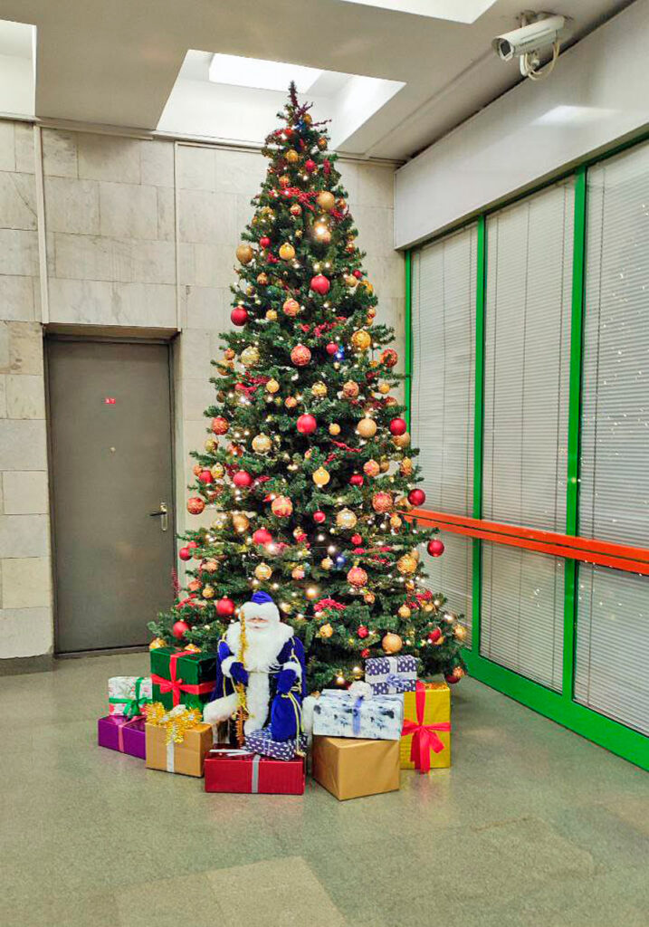 В Минском метрополитене установили праздничную елку на станции «Площадь Ленина» у входа от ТЦ «Столица». Фото красавицы с шарами, подарками и Дедом Морозом опубликовал телеграм-канал столичной подземки.