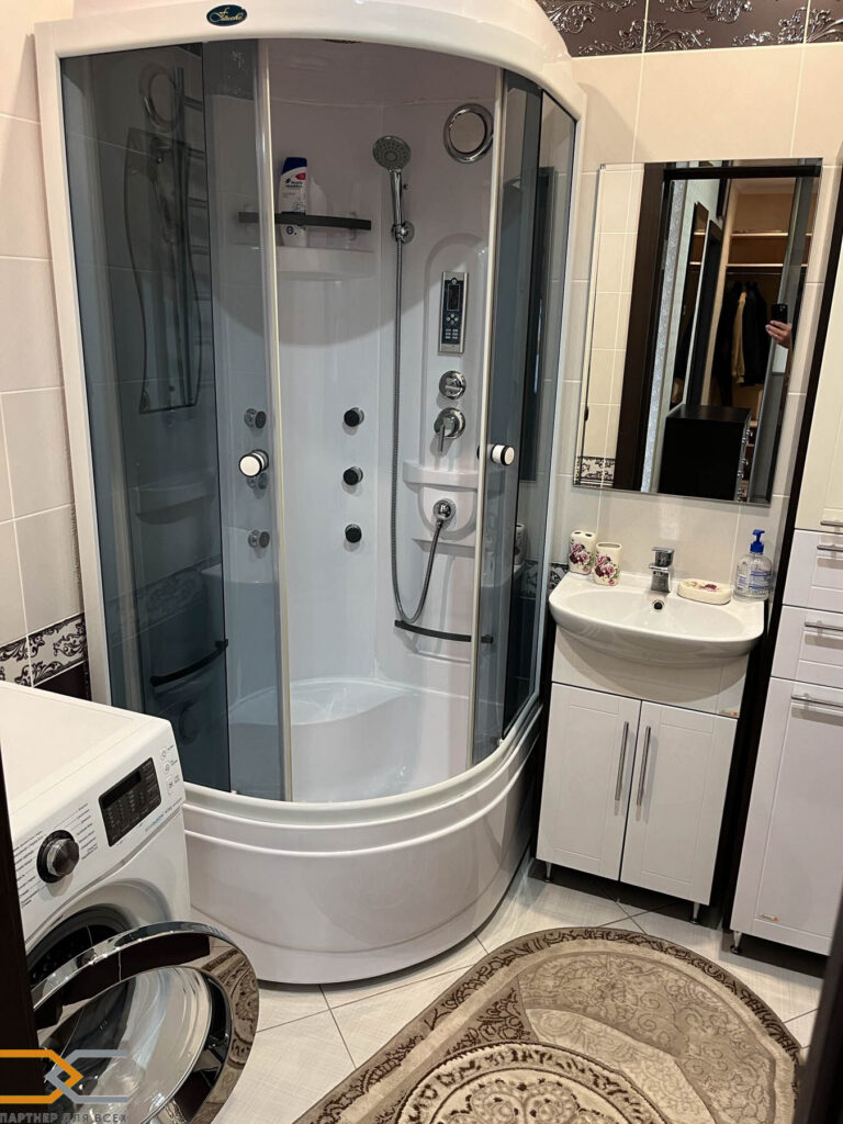 Санузел раздельный, в ванной комнате — душевая кабина и стиральная машина.