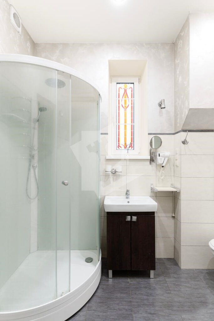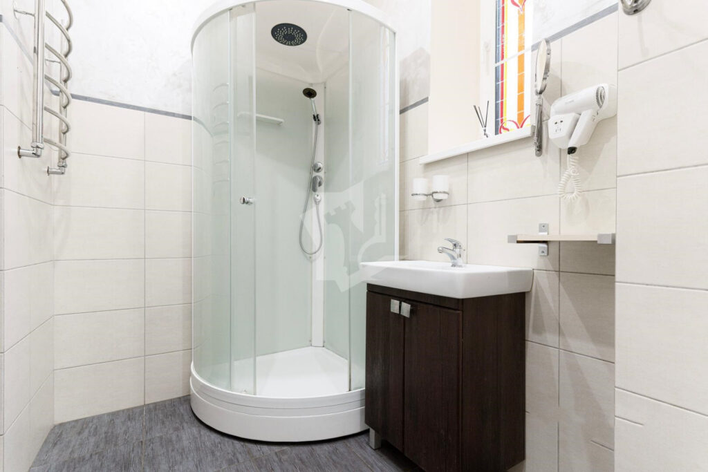 Санузел в квартире совмещенный с душевой кабиной и биде.