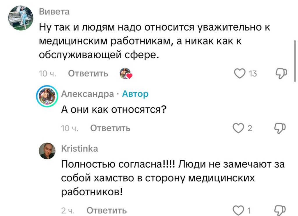 К слову, в комментариях одни пользователи писали, что люди сами за собой не замечают хамства и призывали уважительно относиться к медработникам. Другие отметили, что медицинское училище никто и никогда не называл «хабзой», как выразилась автор ролика.