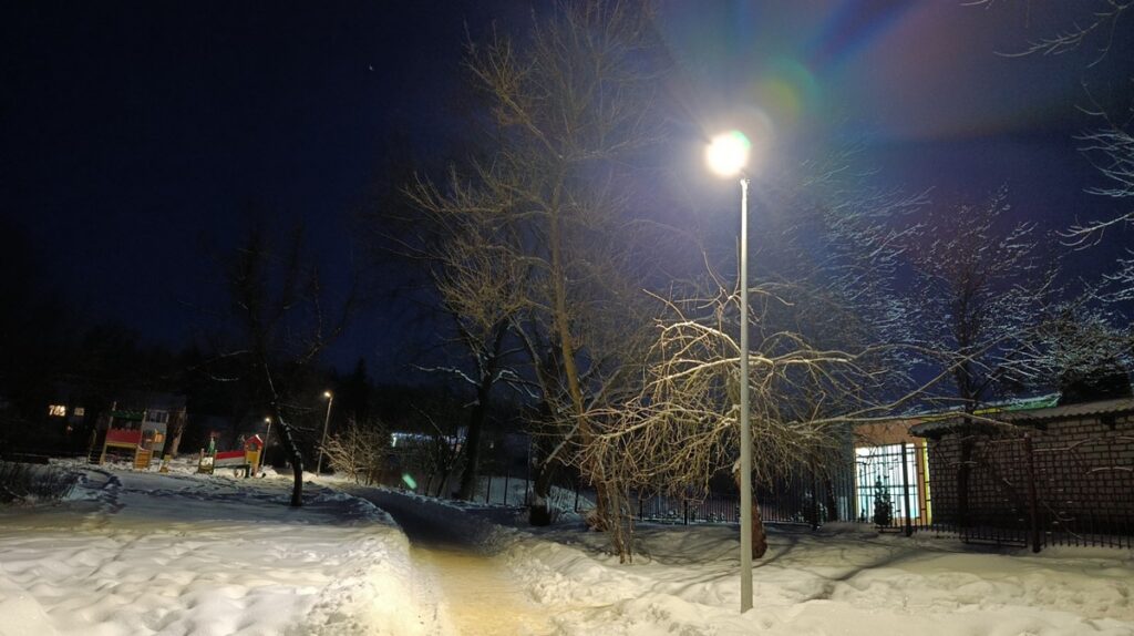 Горят фонари не только на центральных улицах. Хорошо освещены территории возле школ и садов.