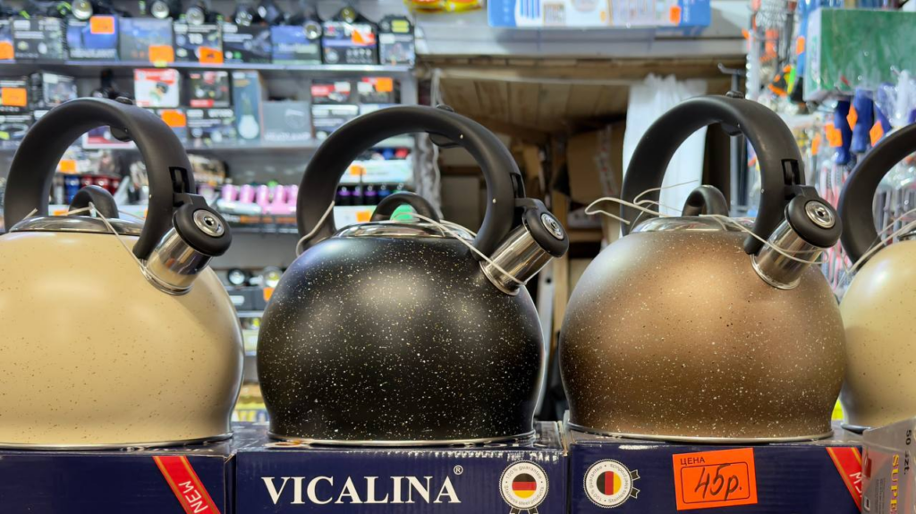 Еще один полезный подарок для дома — чайник, стоимостью около 45 рублей, здесь он есть в разных расцветках. По рынку цены в среднем до 50 рублей.