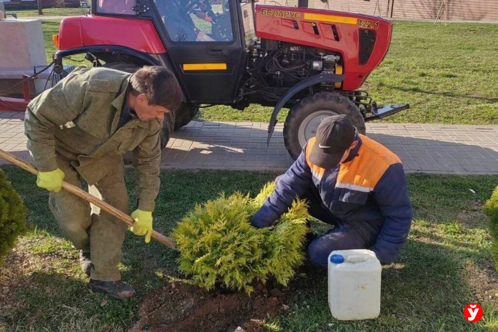 В Копыле ведутся работы по озеленению территории. На Аллее писателей высажено 15 шаровидных туй, которые станут украшением прогулочной зоны и сделают ее более уютной для жителей.