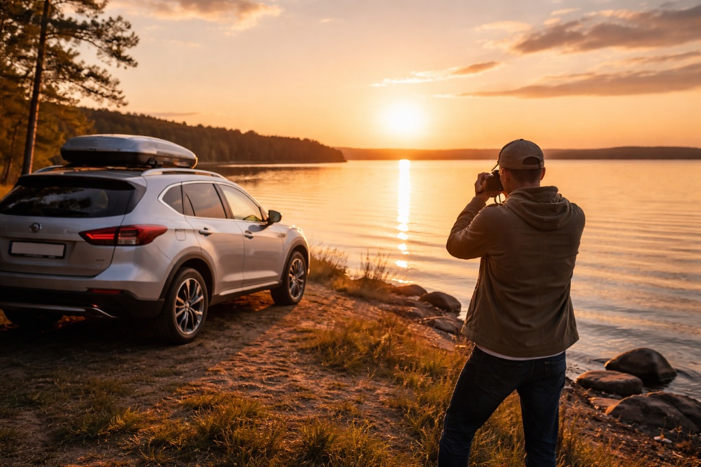 Если машина для вас — не просто транспорт, а участница событий, которые хочется сохранить в памяти — фотографируйте ее во время поездки. Главное здесь — не столько локация, сколько свет и ракурс.