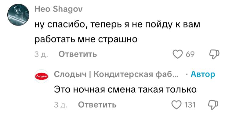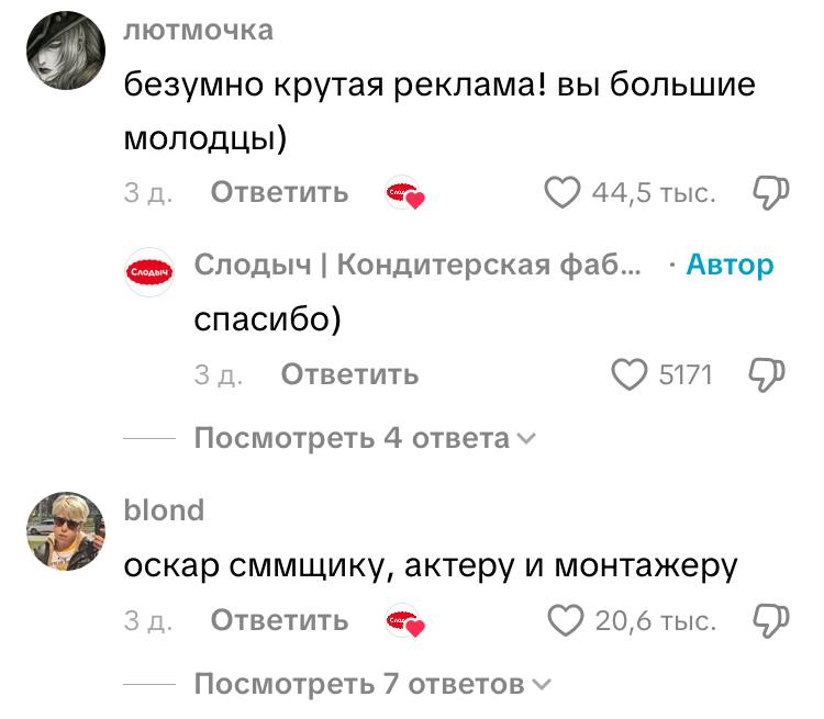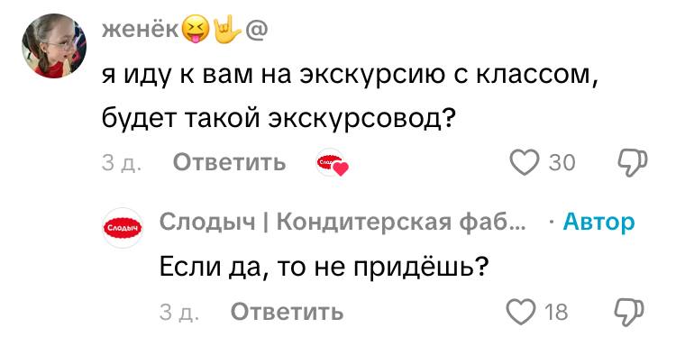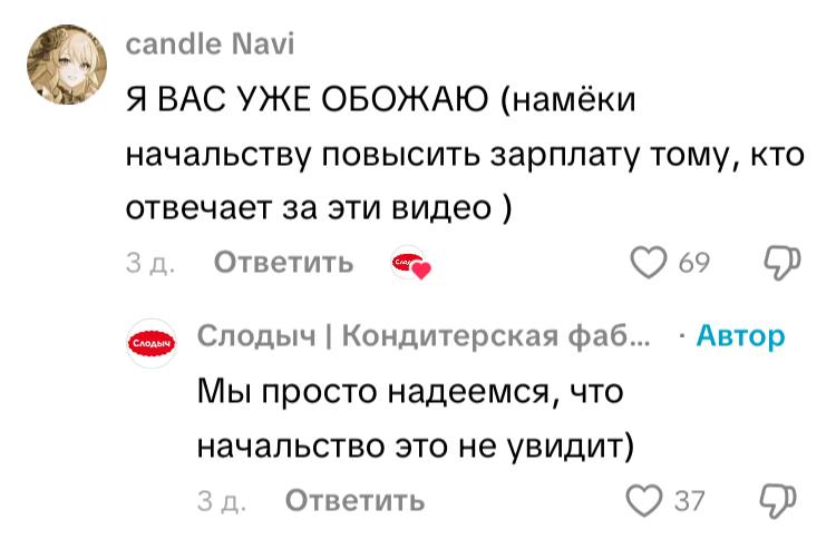 И таких комментариев много, причем представители фабрики не просто на них отвечают, но и перебрасываются шутками с пользователями.