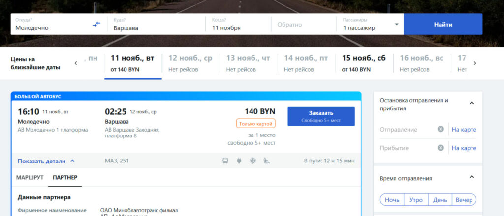 - Отправление из Минска в 4:00 по пятницам и субботам.