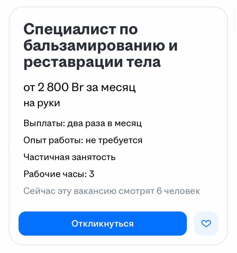 Бальзамировщик, стример и ассистент — подборка вакансий, где платят от 1400 до 20 000 BYN