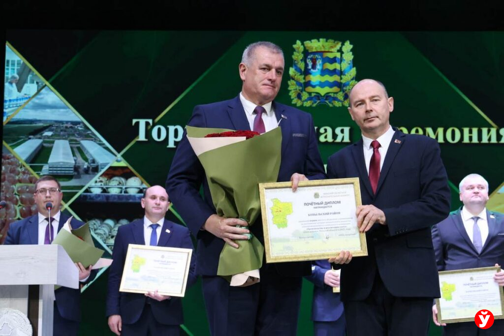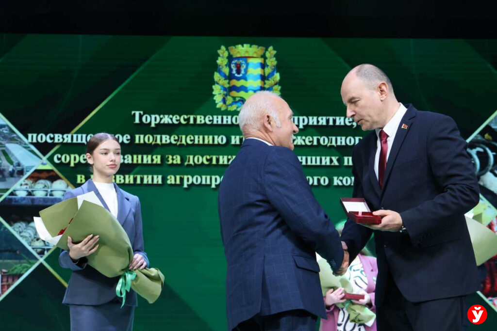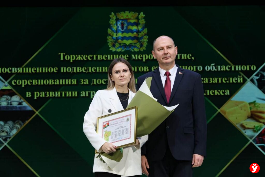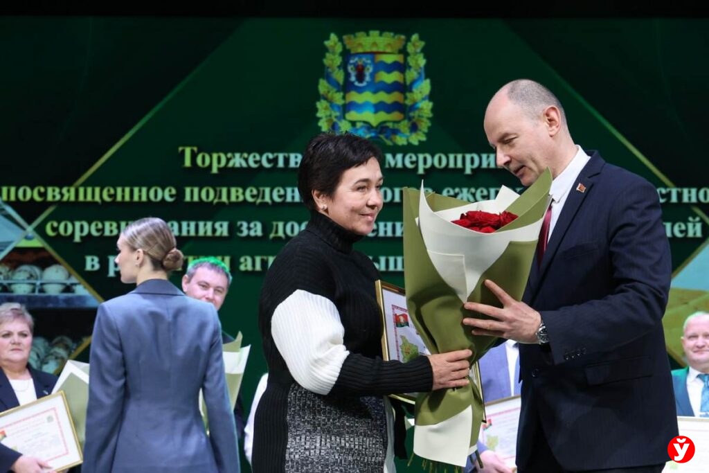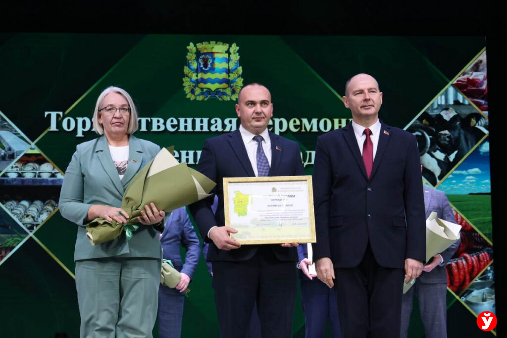 Победителей областного соревнования отметили также первый зампредседателя Миноблисполкома Василий Сысоев, председатель Белорусского профсоюза работников АПК Василий Хватик, председатель Минской областной профсоюзной организации Белорусского профсоюза работников АПК Оксана Бельская и др.