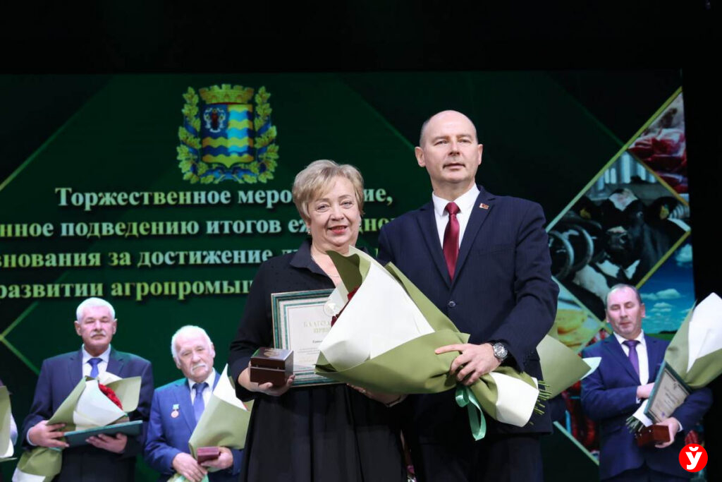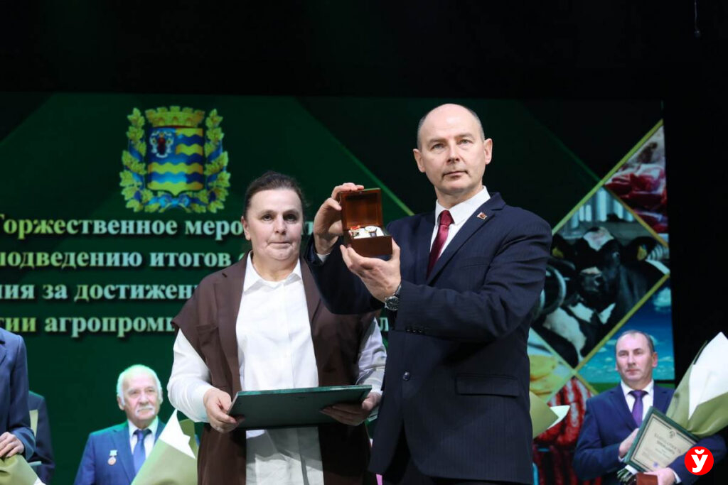 За наградами на сцену поднимались и простые труженики — операторы машинного доения, трактористы-машинисты, зоотехники… Кто-то был удостоен медали «За трудовые заслуги», некоторым объявлена Благодарность Президента Республики Беларусь. Многим губернатор вручил Почетные грамоты Миноблисполкома, Благодарности председателя Миноблисполкома.