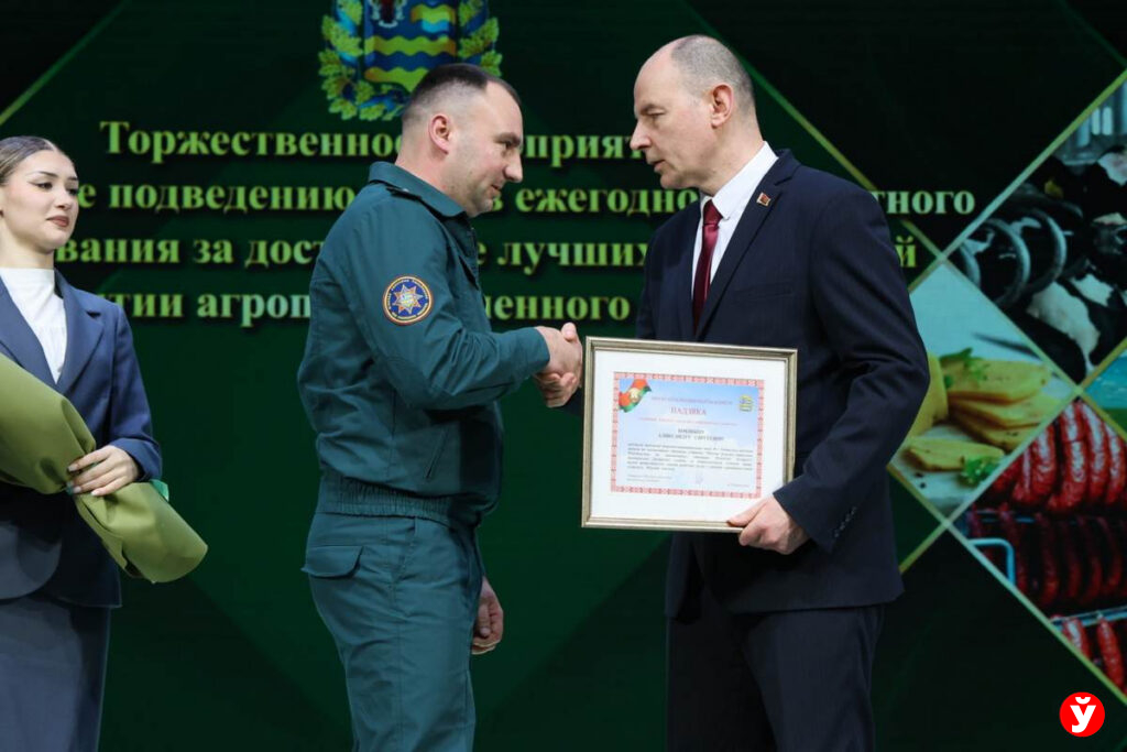 Отдельные награды получили представители МВД и МЧС, принимавшие участие в уборочной кампании 2025 года. Один из таких тружеников — мастер-спасатель пожарной аварийной-спасательной части №2 Несвижского РОЧС Александр Нестеренко.