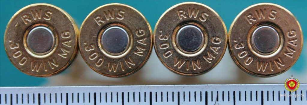 Судебные эксперты установили, что патроны произведены промышленным способом и относятся к охотничьим — с экспансивными пулями калибра .300 Winchester Magnum (7,62×67 мм), предназначены для нарезного огнестрельного оружия калибра 7,62 мм.