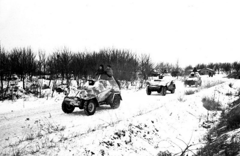 «Я получил свое первое задание как командир отделения разведчиков: двигаться в направлении хуторов Шестаков и Кругляков, вести наблюдение за противником, обо всем замеченном докладывать через танкистов из 25-го полка бригады. Мои ребята, облаченные в белые маскхалаты, выстроились, ожидая приказа на выход. У каждого автомат ППШ, по два диска патронов, гранаты Ф-1 (мы их называли «феньками). Мое вооружение дополнялось самодельной финкой. Через несколько минут нас поглотила степь — безбрежное белое море с застывшими пологими волнами. Шуршала вокруг поземка, обтекая груды земли у воронок».