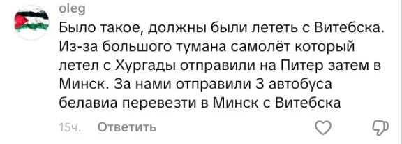 В обсуждениях белорусы стали вспоминать свои переносы. Так один из пользователей рассказал, что и у него была подобная история. Рейс должен был отправляться из Хургады на Витебск. Но из-за тумана борт перенаправили вначале на Питер, затем на Минск и уже автобусами люди добрались до Витебска. У кого-то такое было в декабре 2017-го. Людей посадили в Минске, а когда погода наладилась, то этим же самолетом отправили на Могилев.